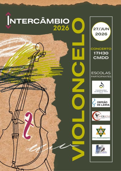 No dia 27 de junho teremos um Intercâmbio de Violoncelos no Conservatório. Além da participação dos nossos alunos, também participam alunos do Orfeão de Leiria, Ourearte, Academia de Música de Óbidos, e do Sport Operário Marinhense.
